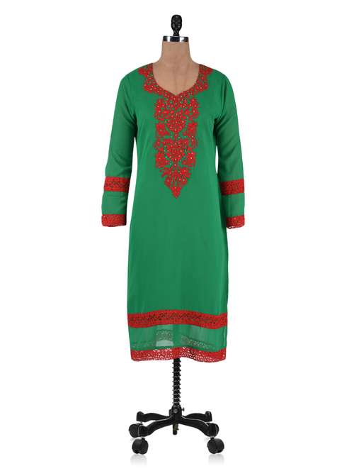 #1 green poly georgette embroidered precious stones summer kurti & similar products...