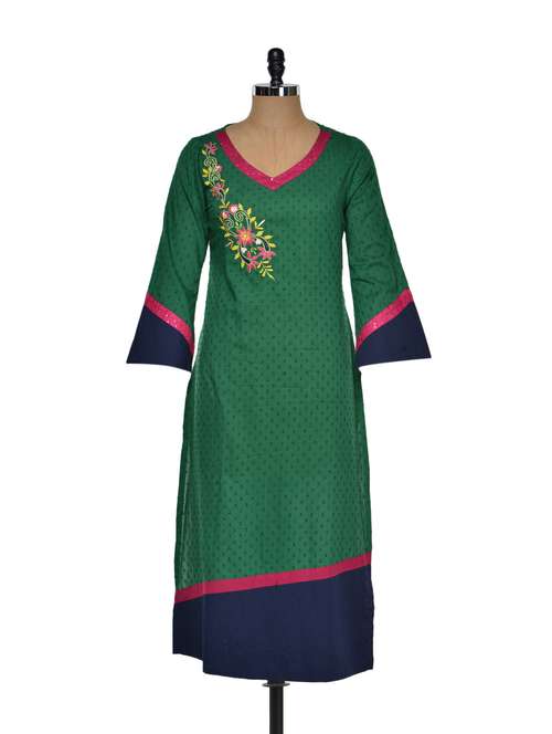 #1 Floral embroidered green kurti & similar products...