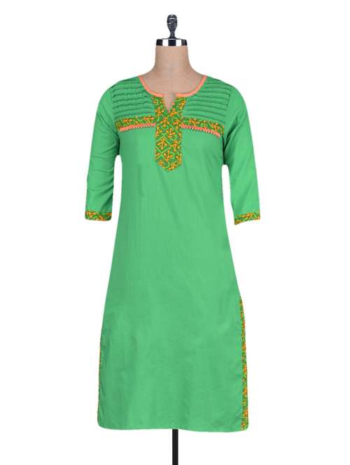 #1 green cotton straight kurta & similar products...