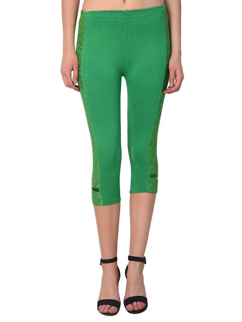 #2 green solid leggings capri & similar products...