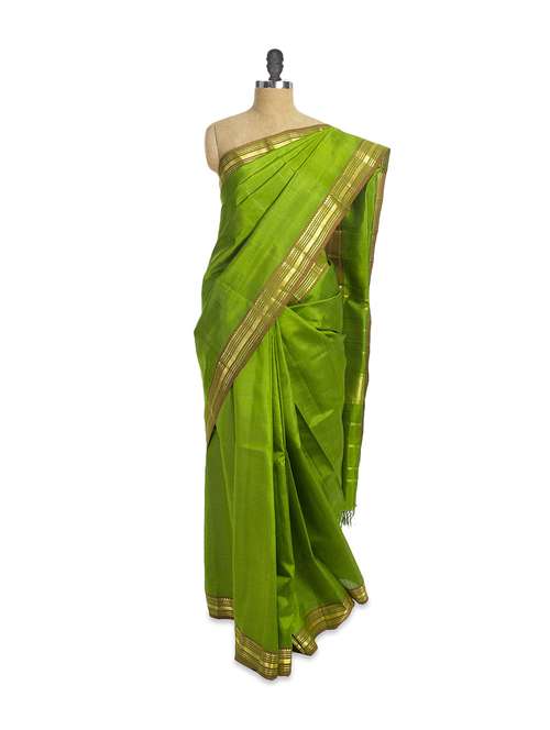 #1 shiny parrot green saree & similar products...