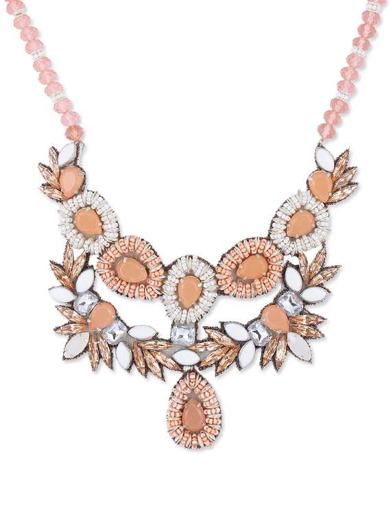 #2 peach statement necklace with crystals and seed beads & similar products...