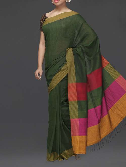 #1 green bengali handloom cotton saree & similar products...