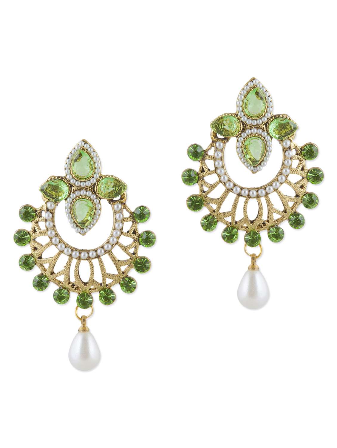 #2 green stone embellished polki drop earrings & similar products...