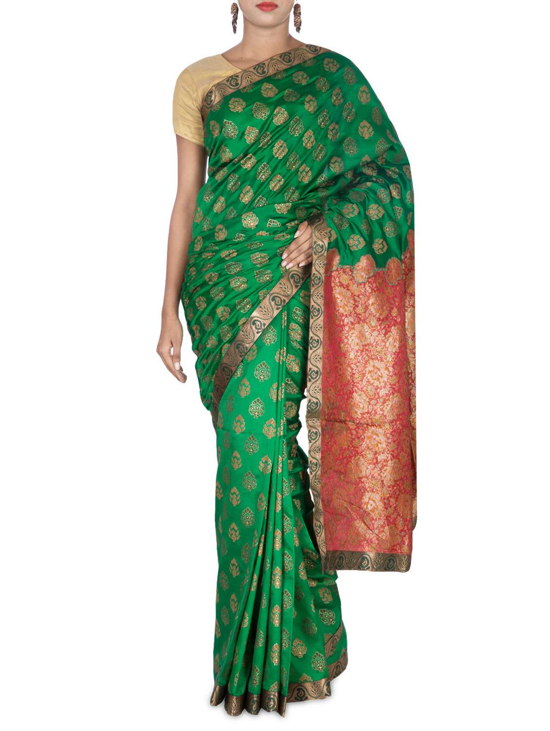#1 green art silk printed banarasi saree & similar products...