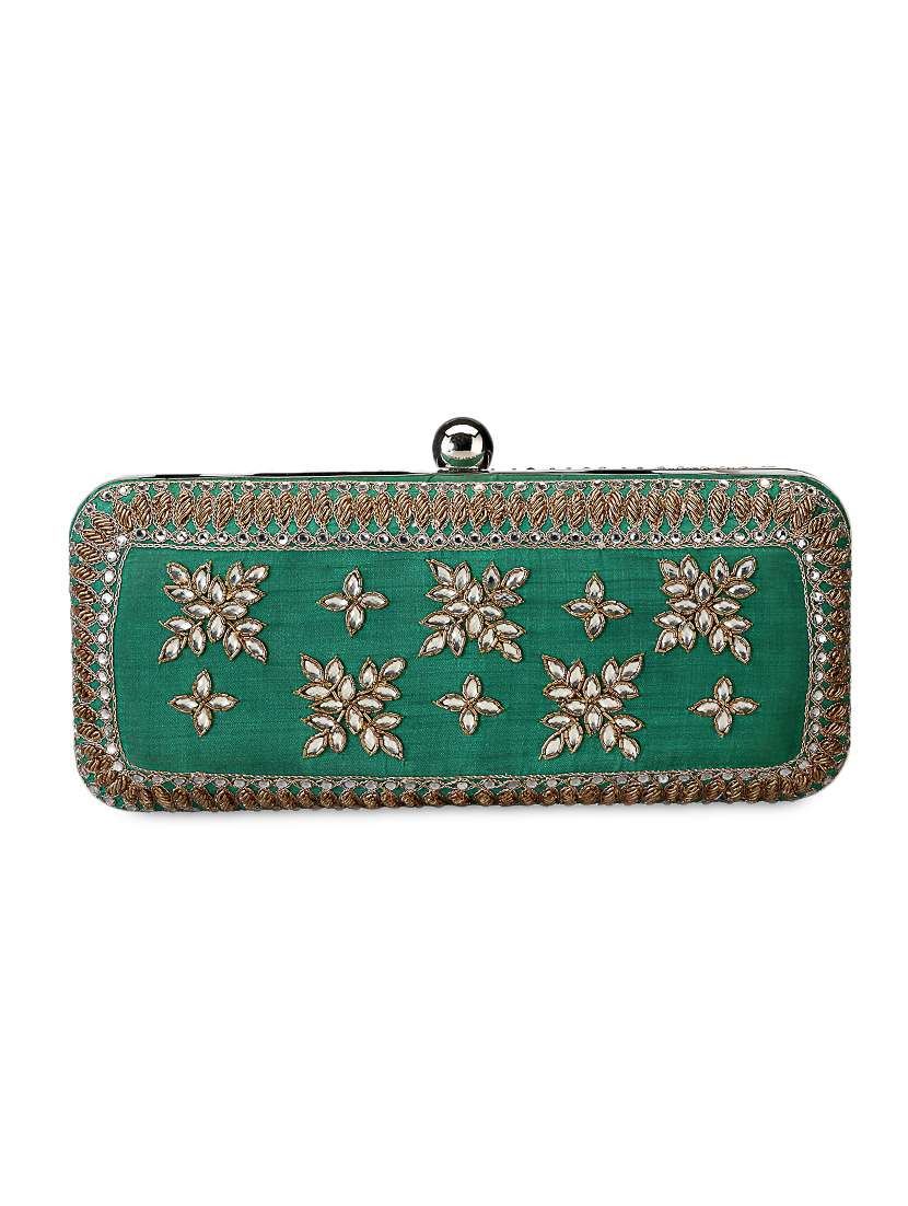 #3 green leather crystal embellished clutch & similar products...