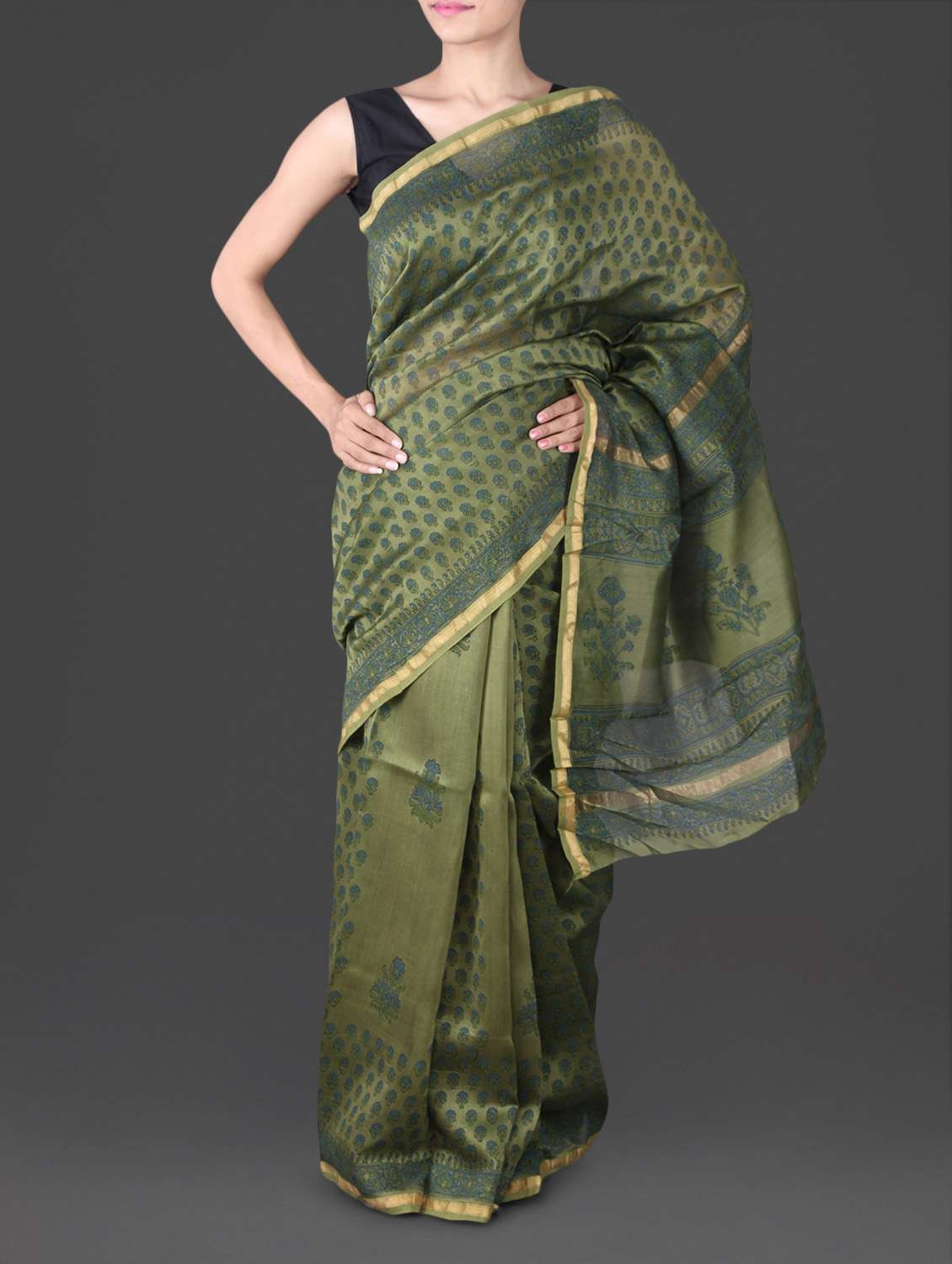 #1 green block print kota doria silk saree & similar products...