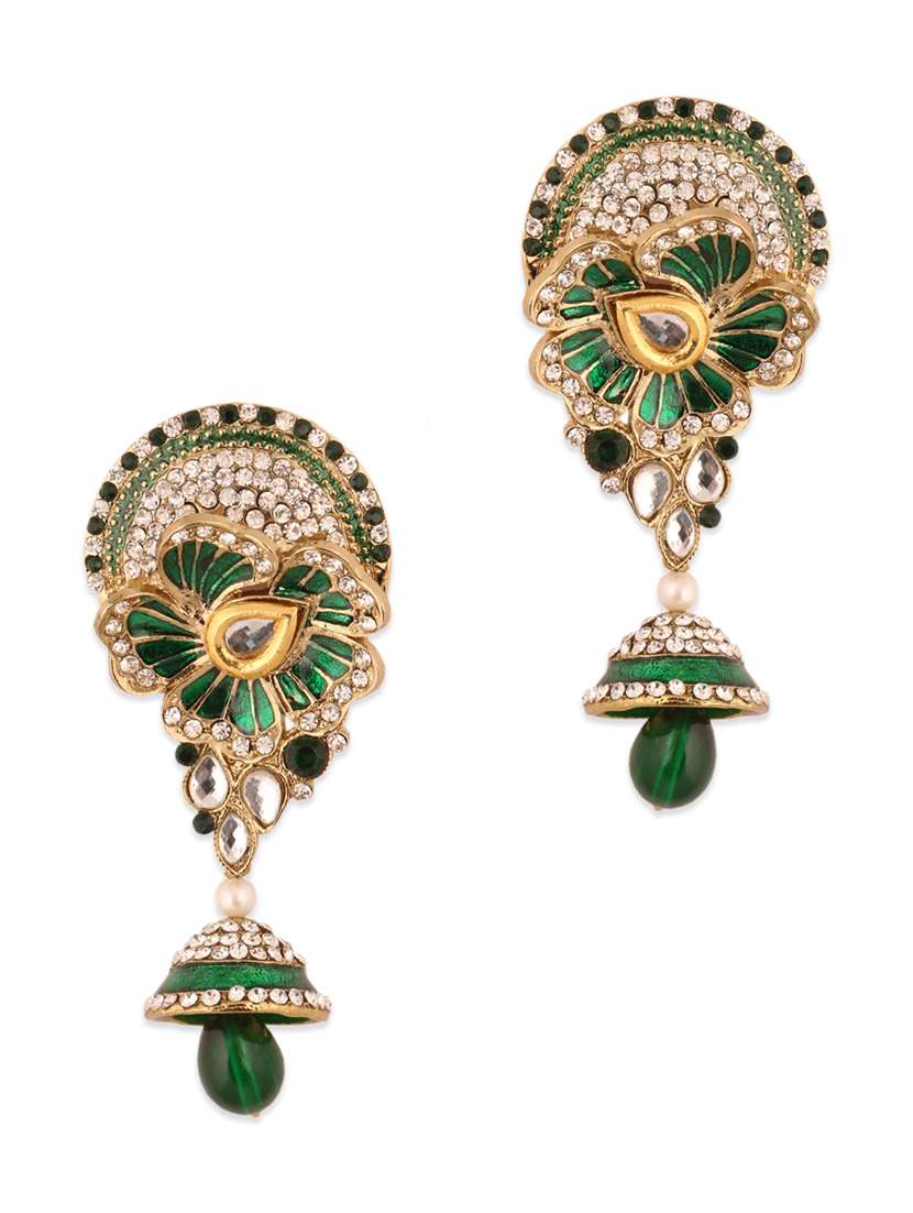 #2 green embellished danglers with a tear drop base & similar products...