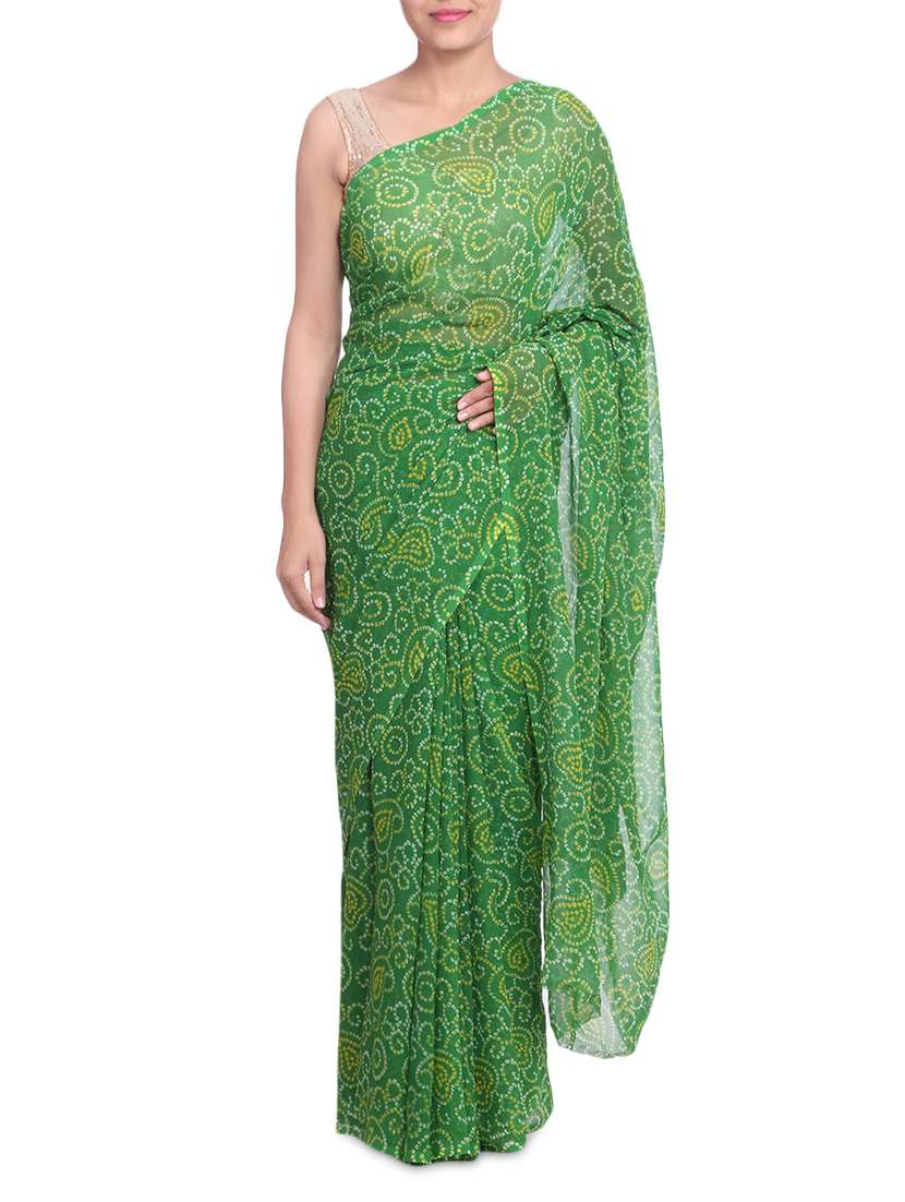 #1 green georgette paisley print sari & similar products...