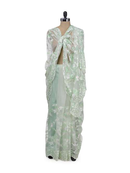 #1 green embroidered bollywood saree & similar products...