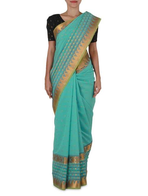 #1 sea green zari work cotton saree & similar products...
