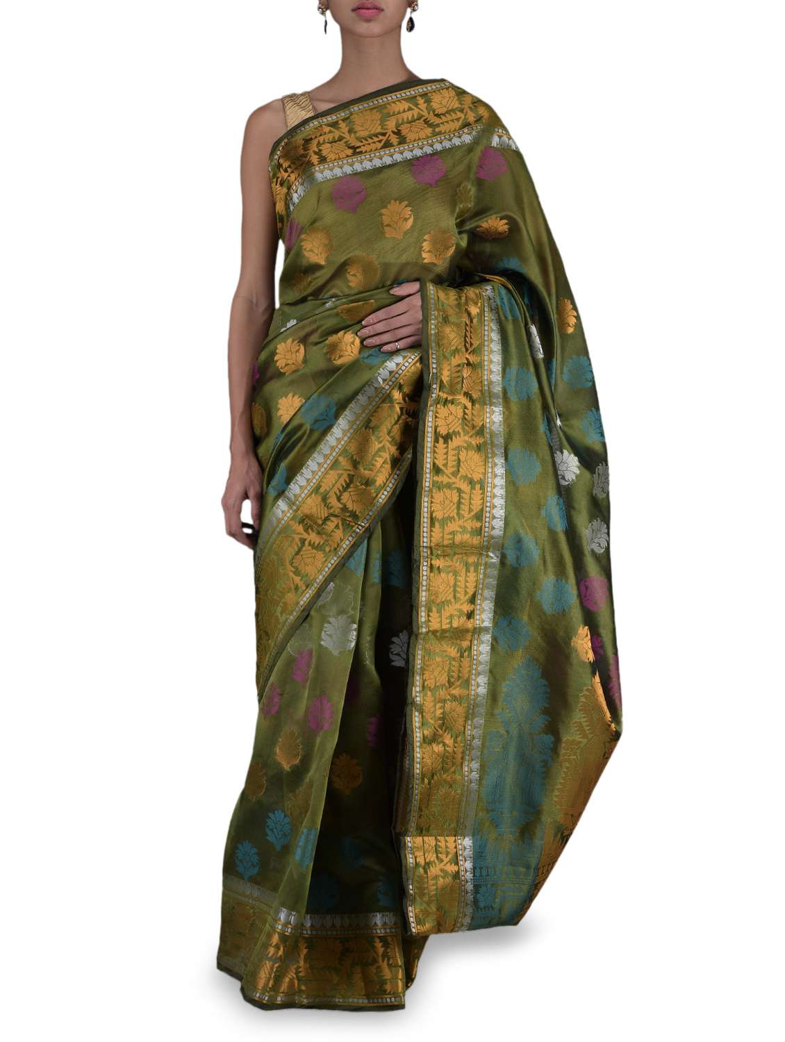#1 green chanderi silk jacquard saree & similar products...