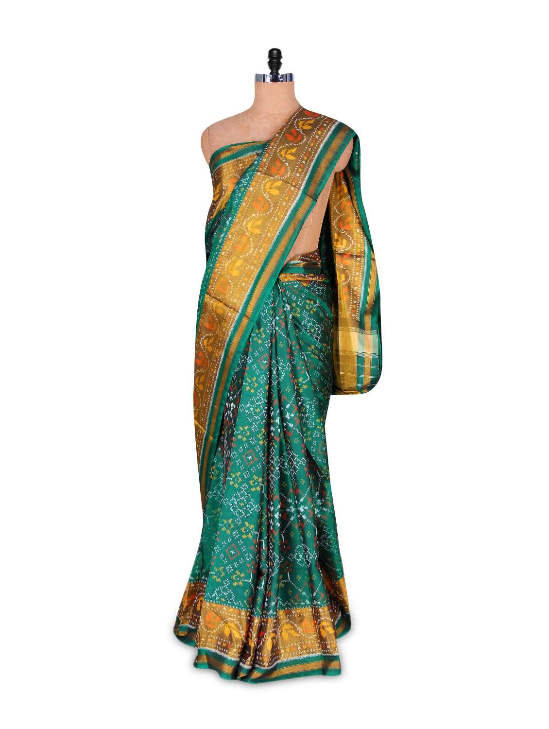 #2 handwoven pure patan patola green saree with traditional border & similar products...