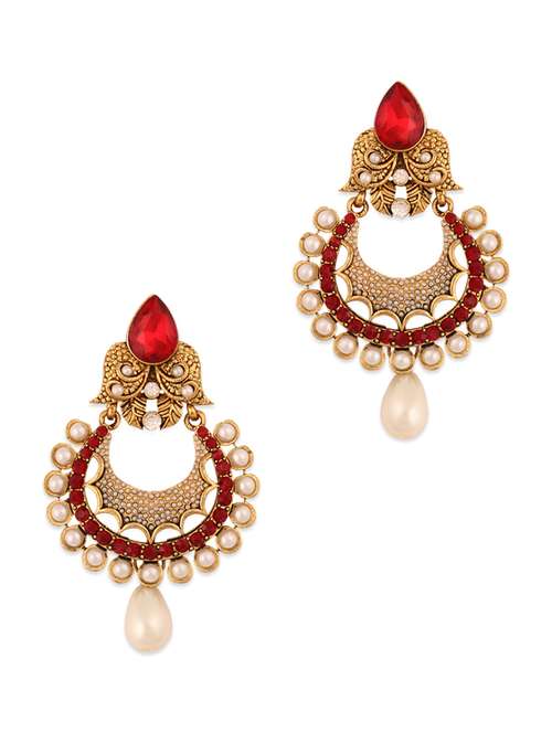 #1 red and gold embellished earrings with a pearl drop base & similar products...