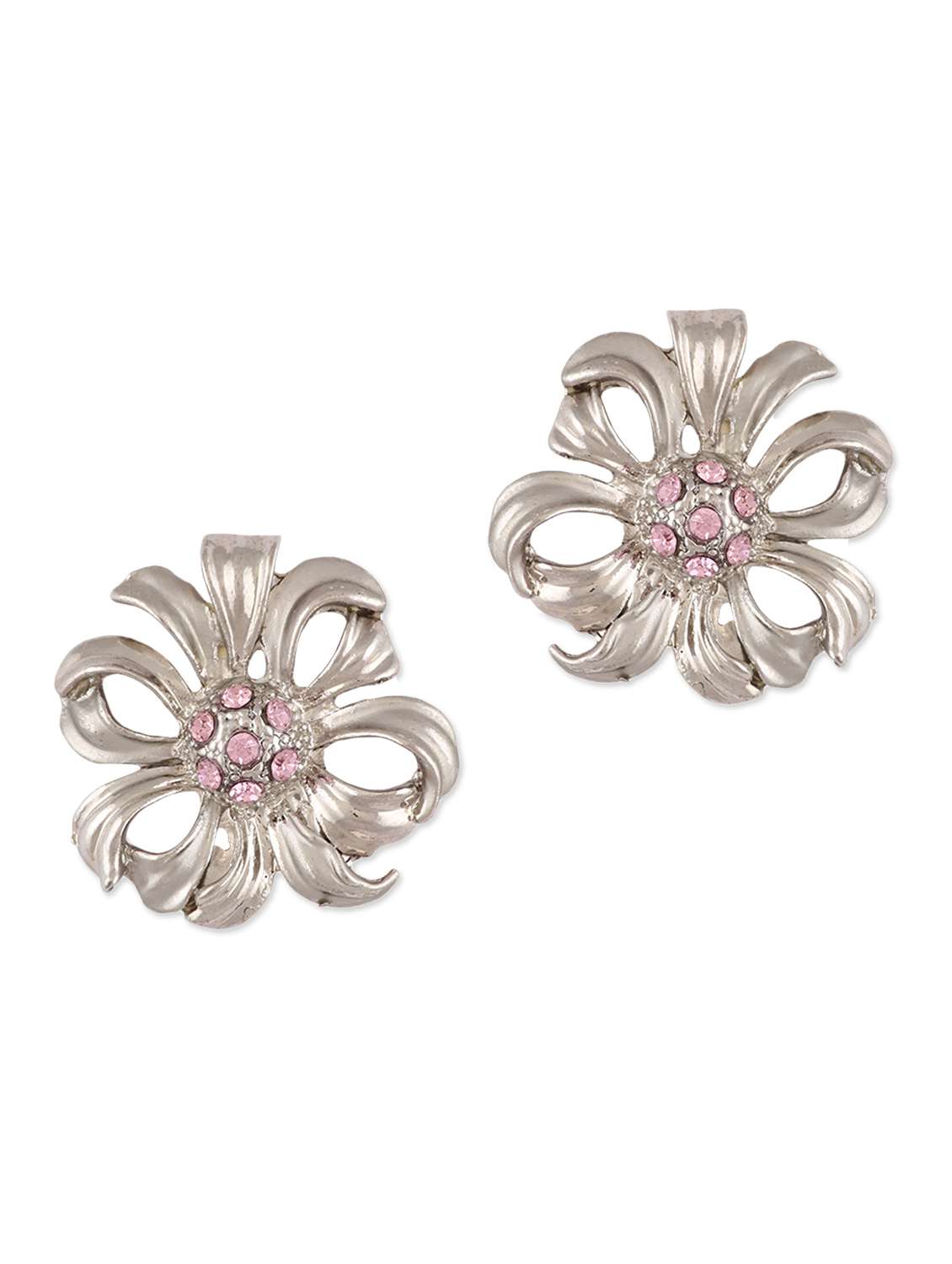 #2 silver flower with pink stones stud earrings & similar products...