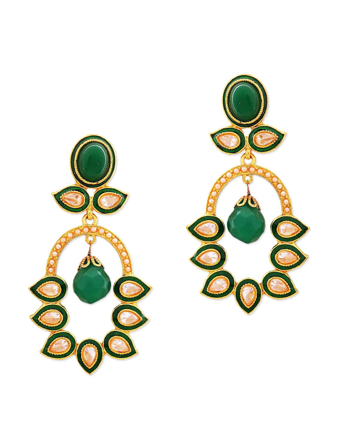 #2 green copper studded kundan work drop earrings & इसी तरह के उत्पाद...
