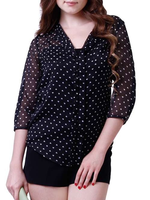 #1 black heart print transparent shirt & similar products...