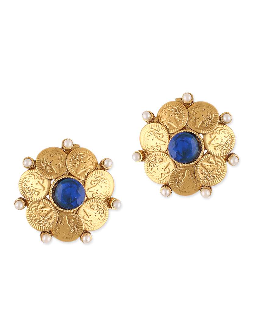 #3 blue stone embellished floral studs & similar products...
