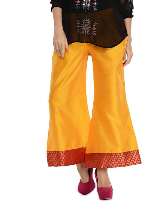 #1 yellow and red art crepe traditional palazzo & similar products...
