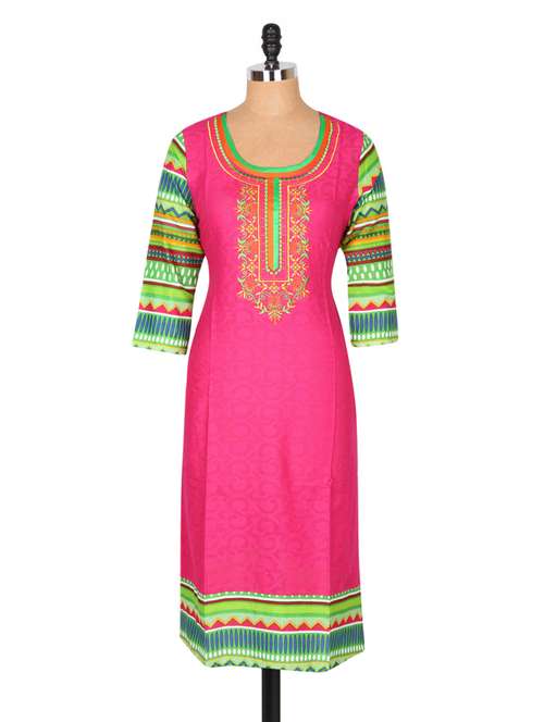 #1 pink quarter sleeve printed kurta with embroidered placket & similar products...