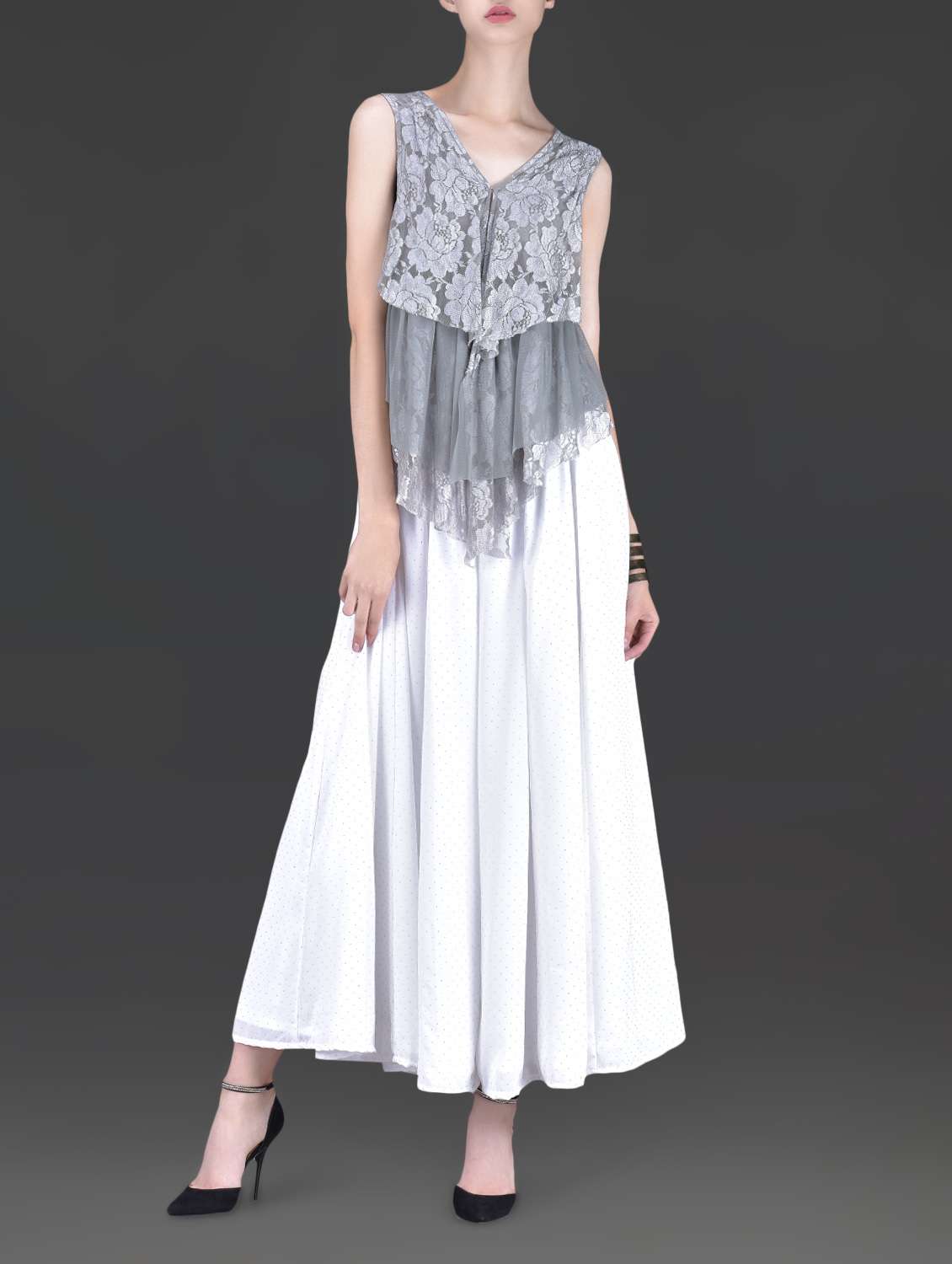 #1 Grey Lace Top and White Palazzo Set & similar products...