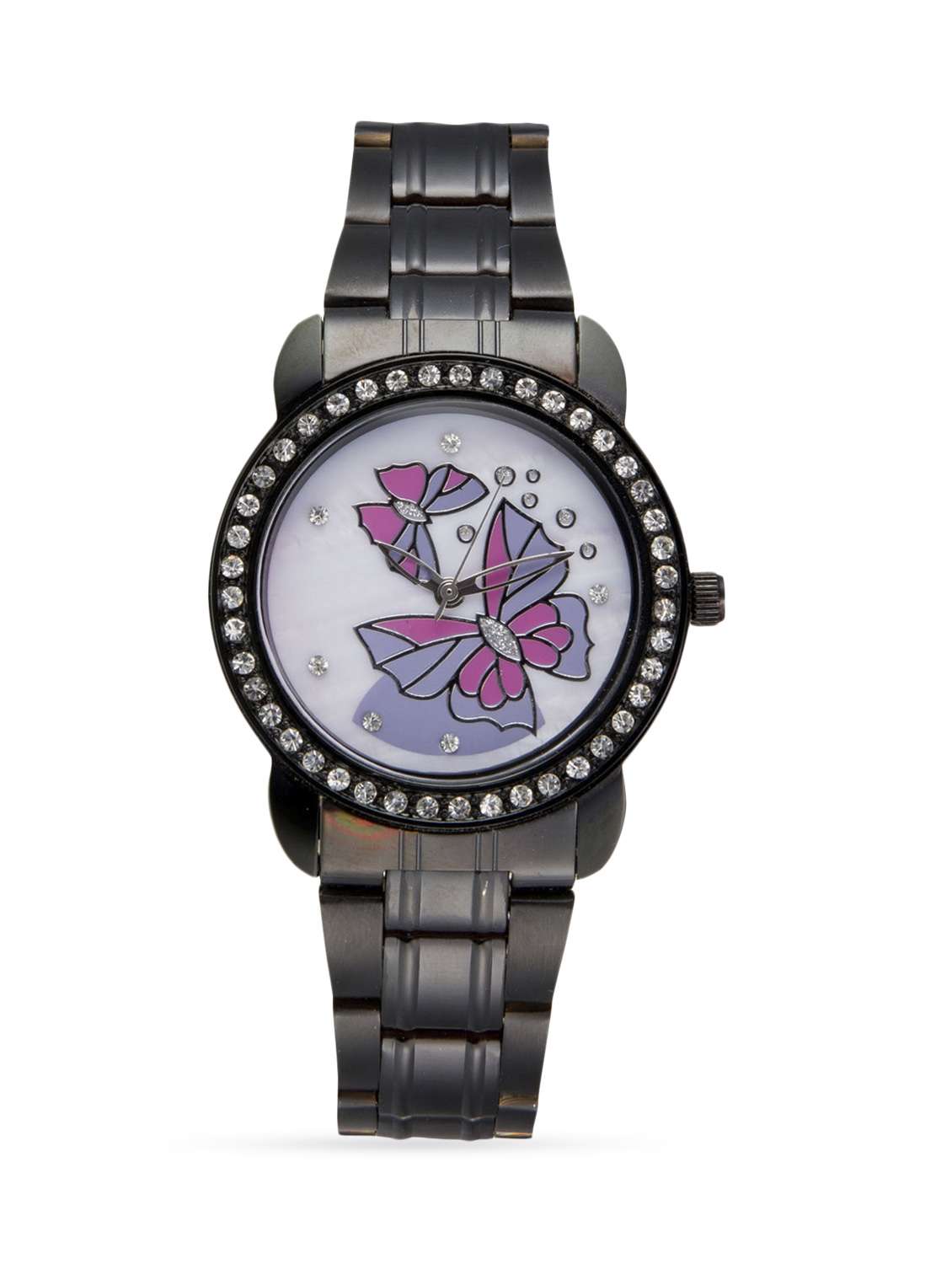 #3 black stainless steel butterfly round dial watch & similar products...