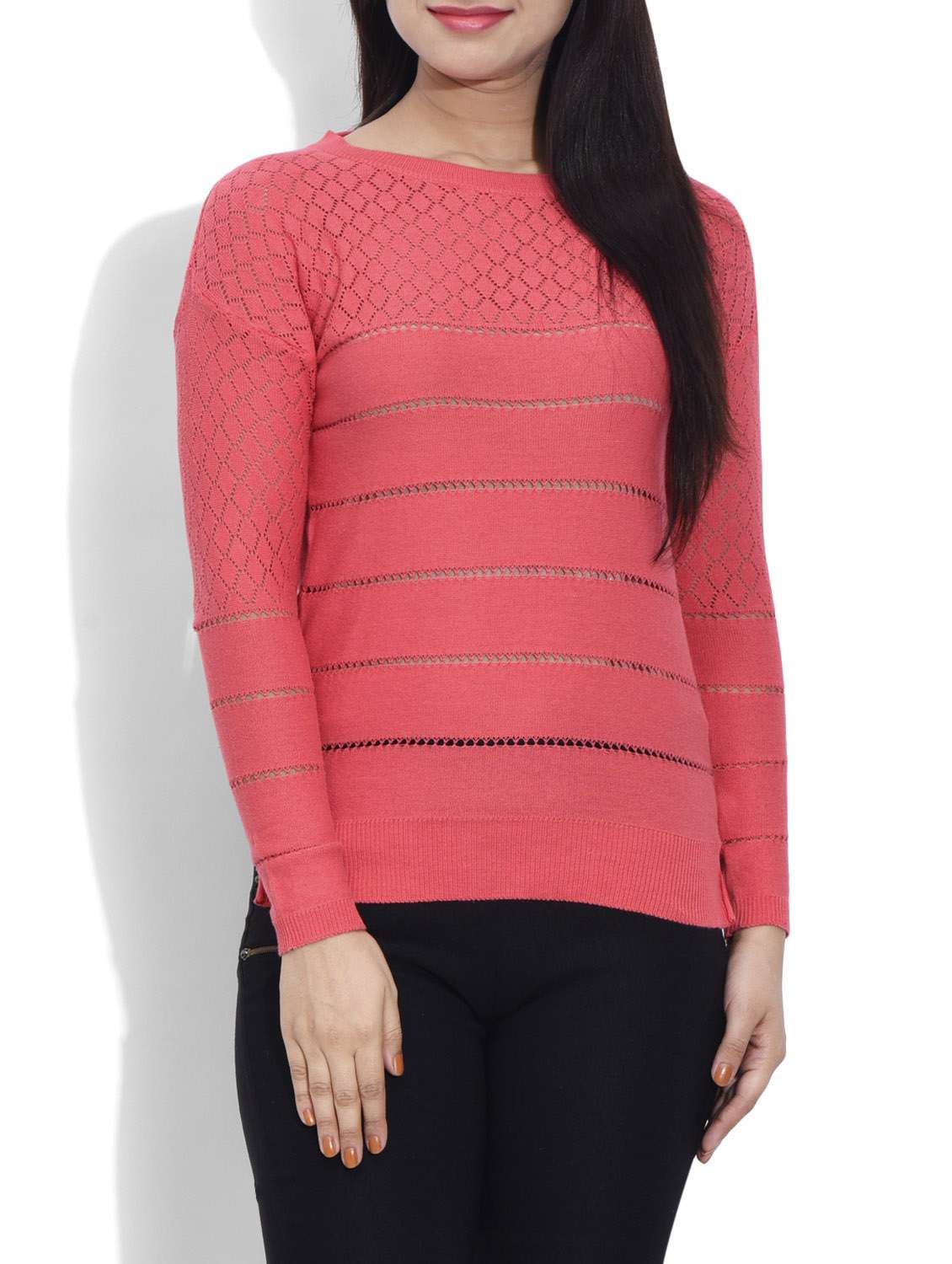 #1 Pink Woollen Striped Sweater & similar products...
