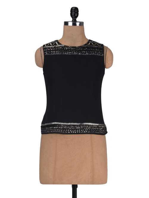 #1 black color color georgette solid sleeveless top & similar products...
