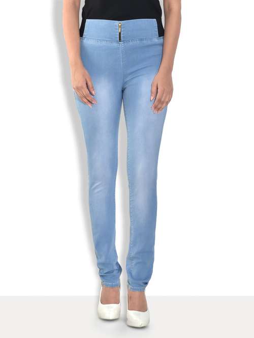 #1 sky blue stone washed cotton lycra jeggings & similar products...