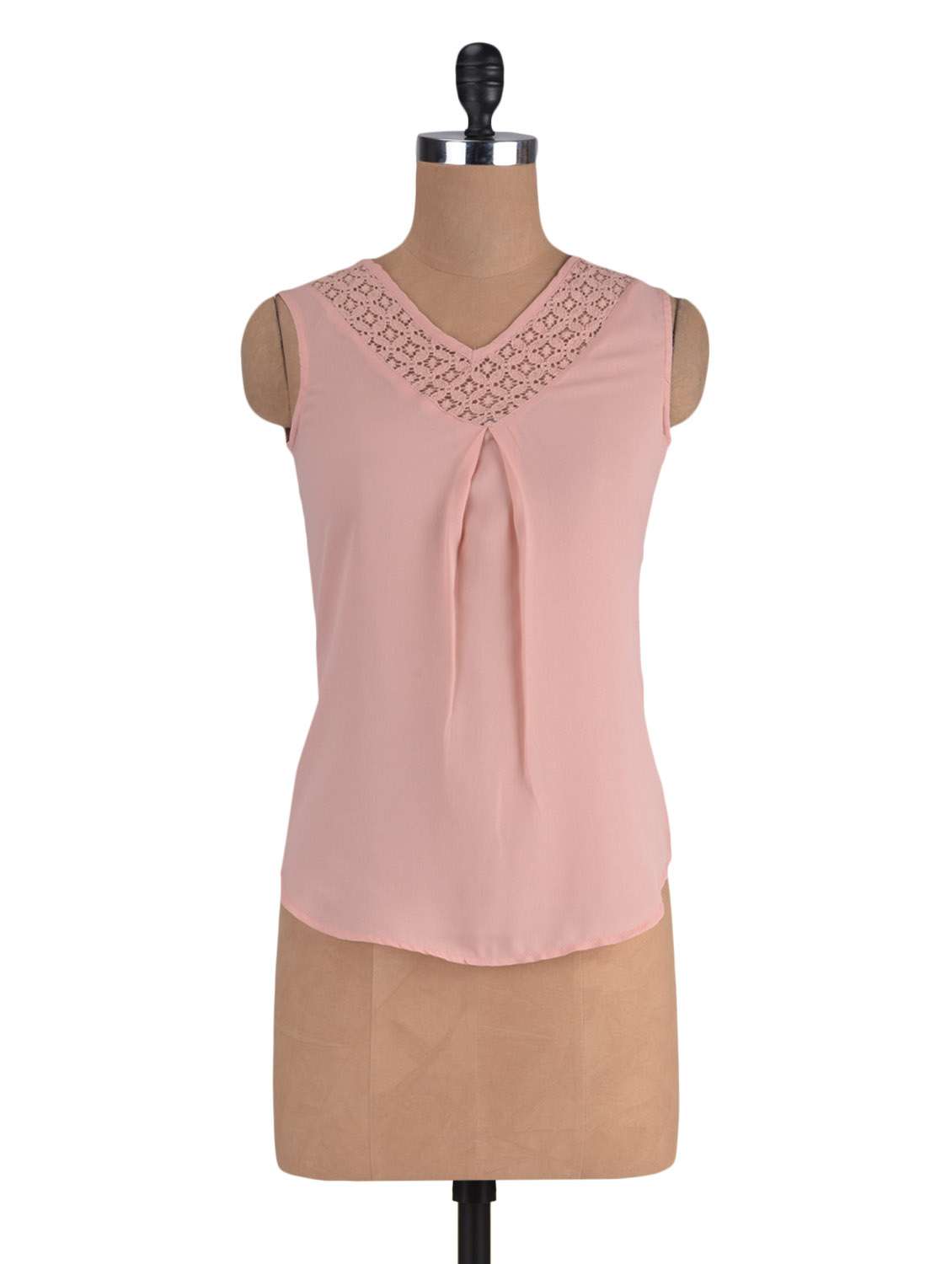 #4 pink color poly crepe and lace solid sleeveless top & similar products...
