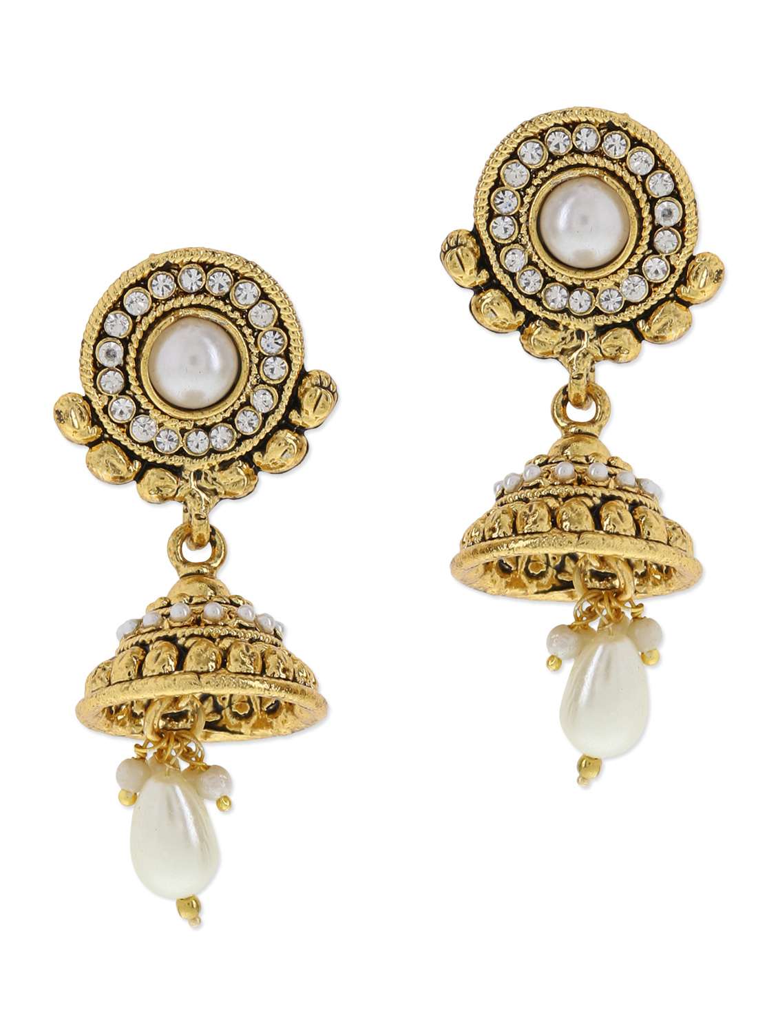 #3 gold crystal and pearl embellished jhumka earrings & इसी तरह के उत्पाद...