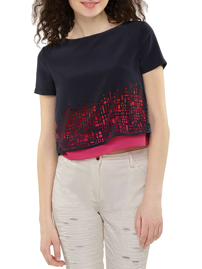 #2 navy blue cutwork crop top & similar products...