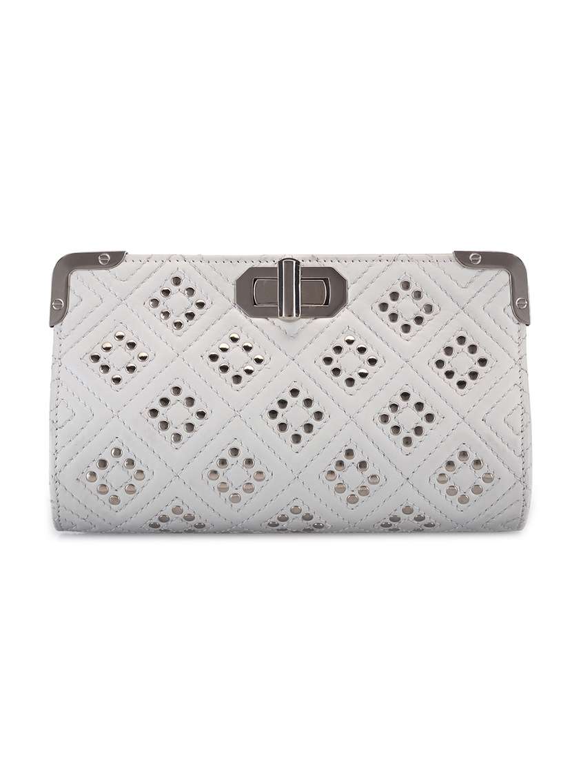 #3 white leather embellished clutch & similar products...
