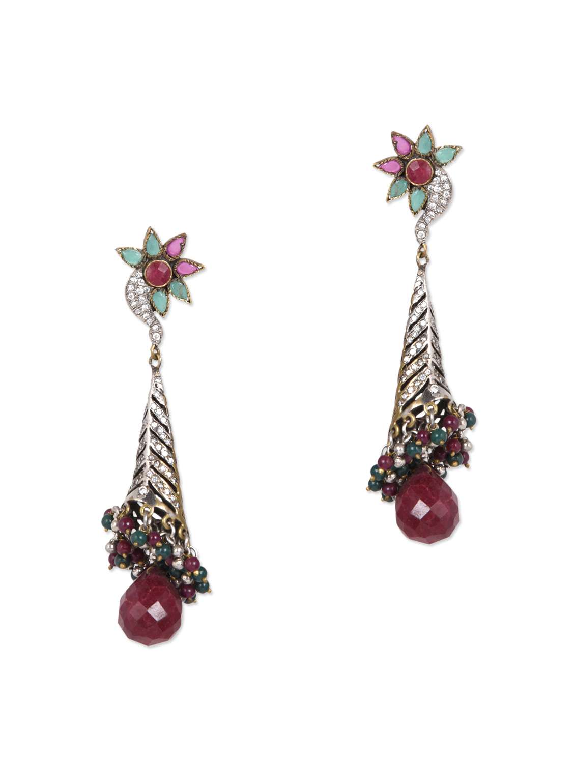 #2 maroon bead embellished earrings & similar products...