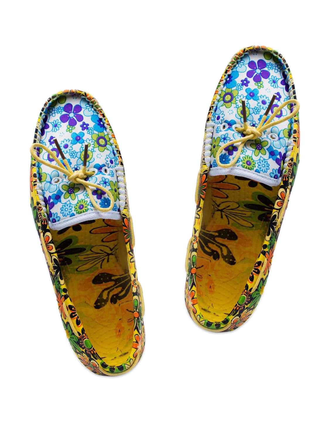 #4 multi-coloured floral print loafers with a yellow lace & similar products...
