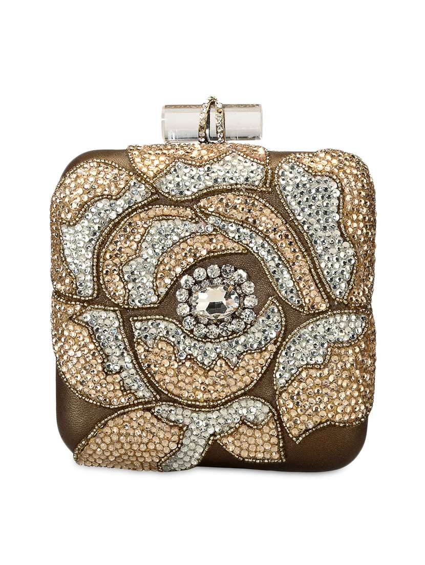 #2 brown leather crystal embellished clutch & similar products...