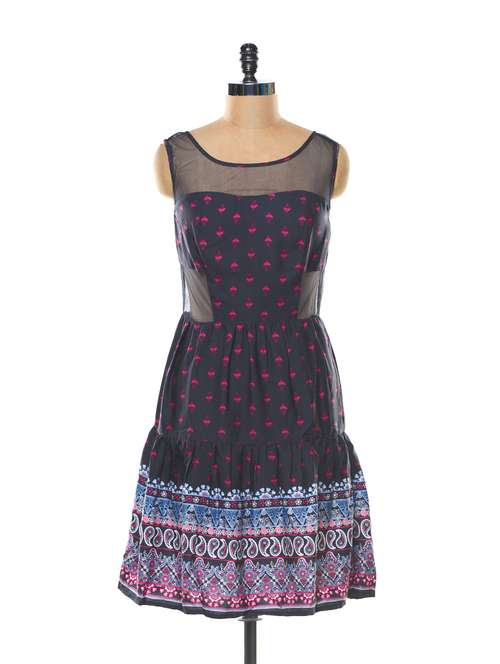 #1 sheer neck blue printed dress & similar products...