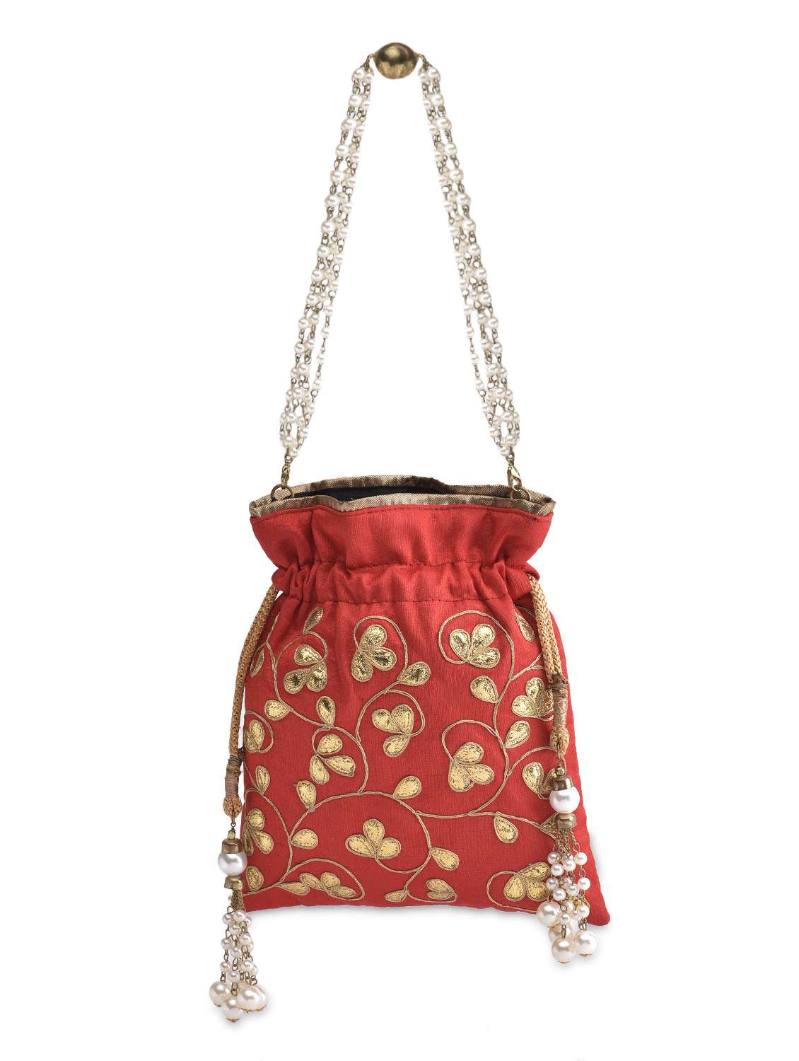 #4 red gota patti embroidered pearls beaded silk potli & similar products...