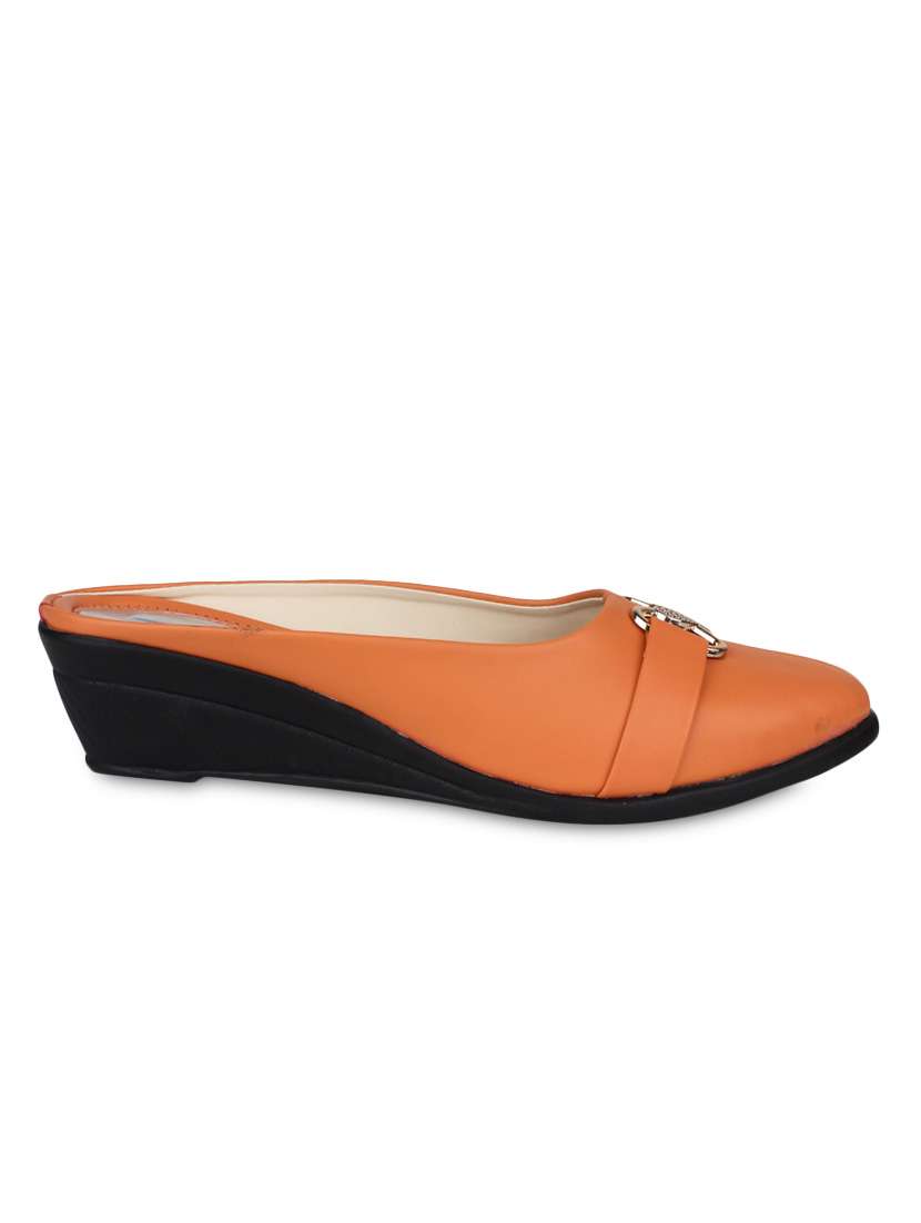 #4 orange embellished faux leather wedges & similar products...