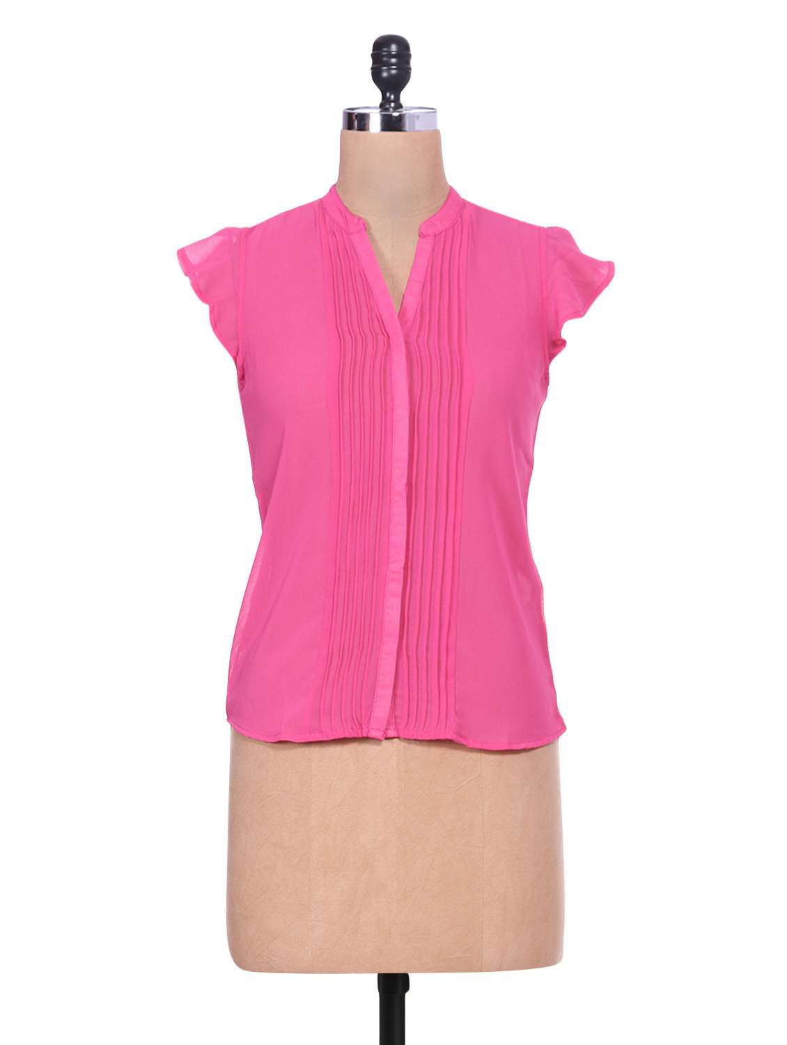 #2 pink georgette top with ruffle sleeves and pin-tucks & similar products...