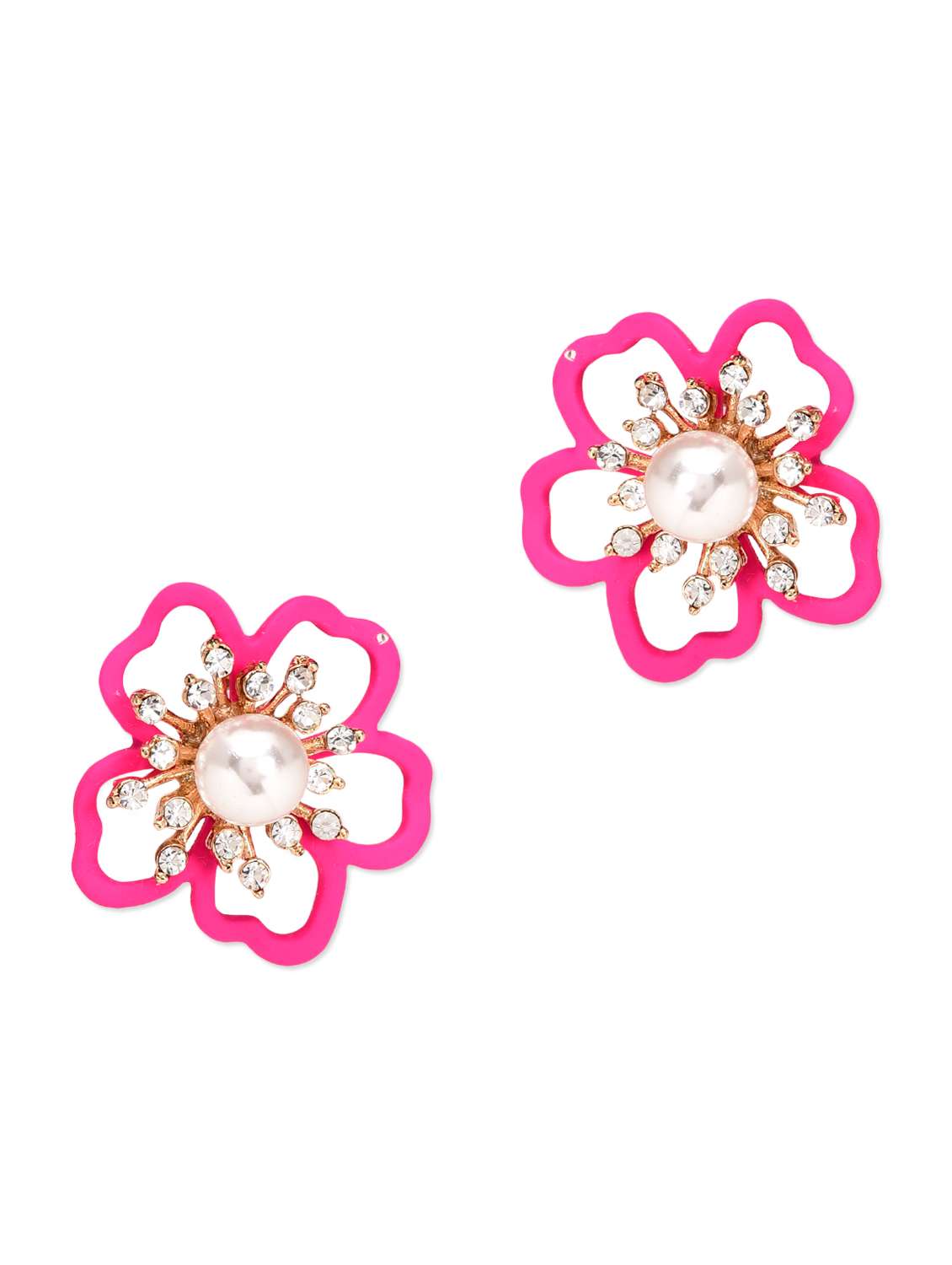 #4 fuchsia enamel and stones embellished flower studs & similar products...