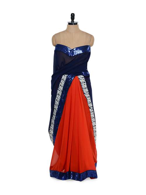 #1 red and royal blue sequined saree & similar products...