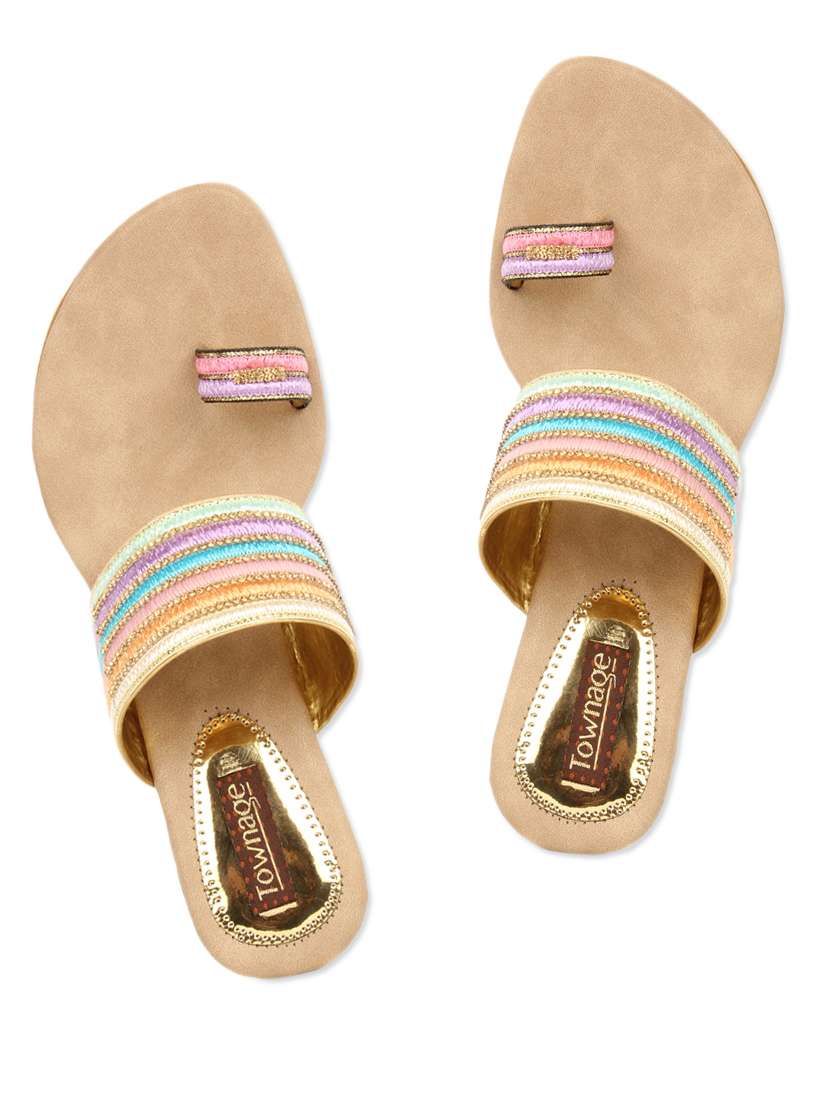 #3 White Multi Color Stripes Leatherette Toe Separator Wedges & similar products...