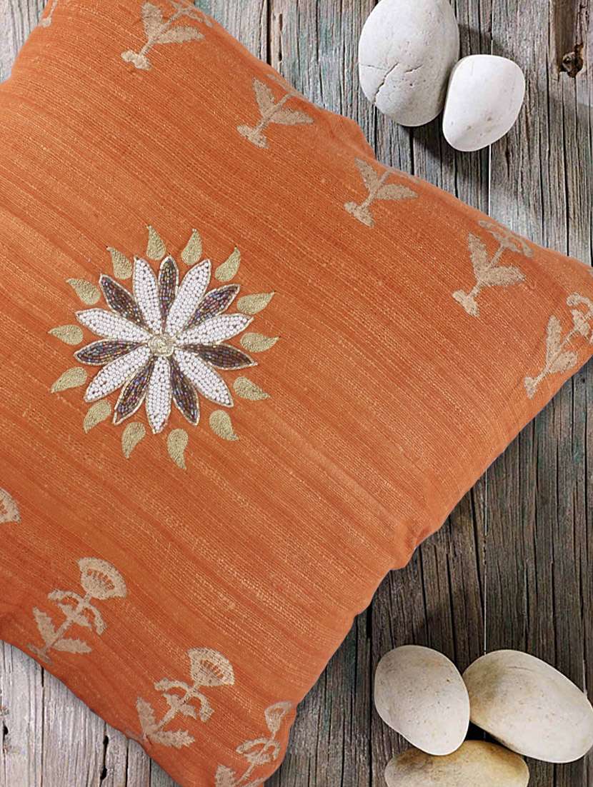 #4 beaded floral orange cushion cover & similar products...