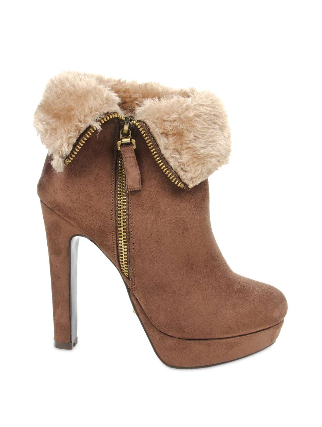 #4 brown ankle-length heeled boots with fur detailing & similar products...