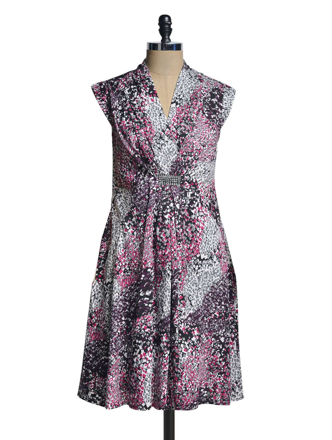 #1 multicoloured printed v-neck dress & similar products...