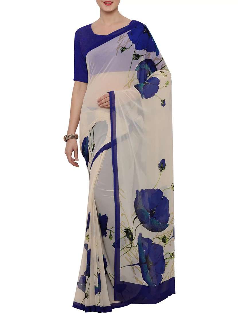 #1 beige georgette printed saree with blouse & similar products...