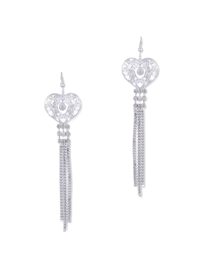 #3 heart patterned crystal studded silver chain hanging earrings & similar products...