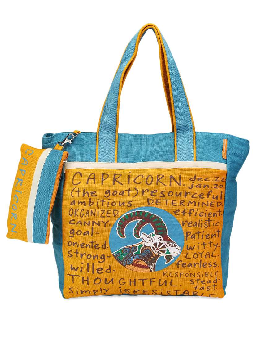 #2 blue & yellow capricorn jute tote bag & similar products...