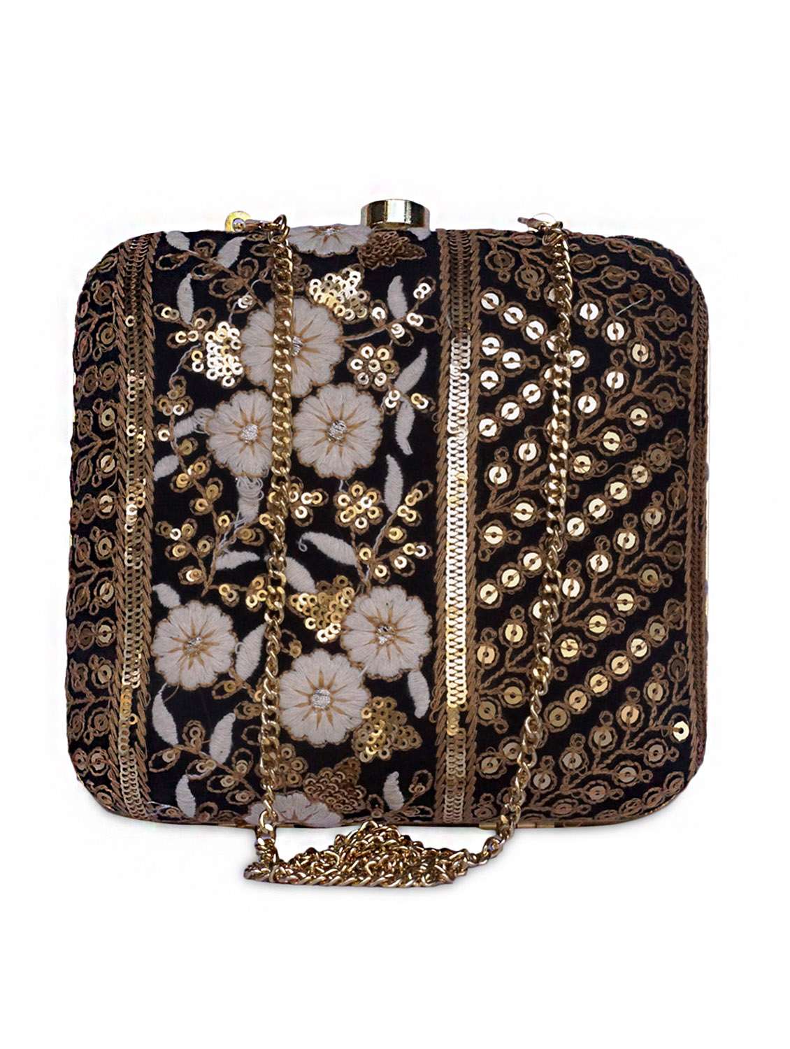 #4 black floral embroidered and sequined raw silk clutch & similar products...